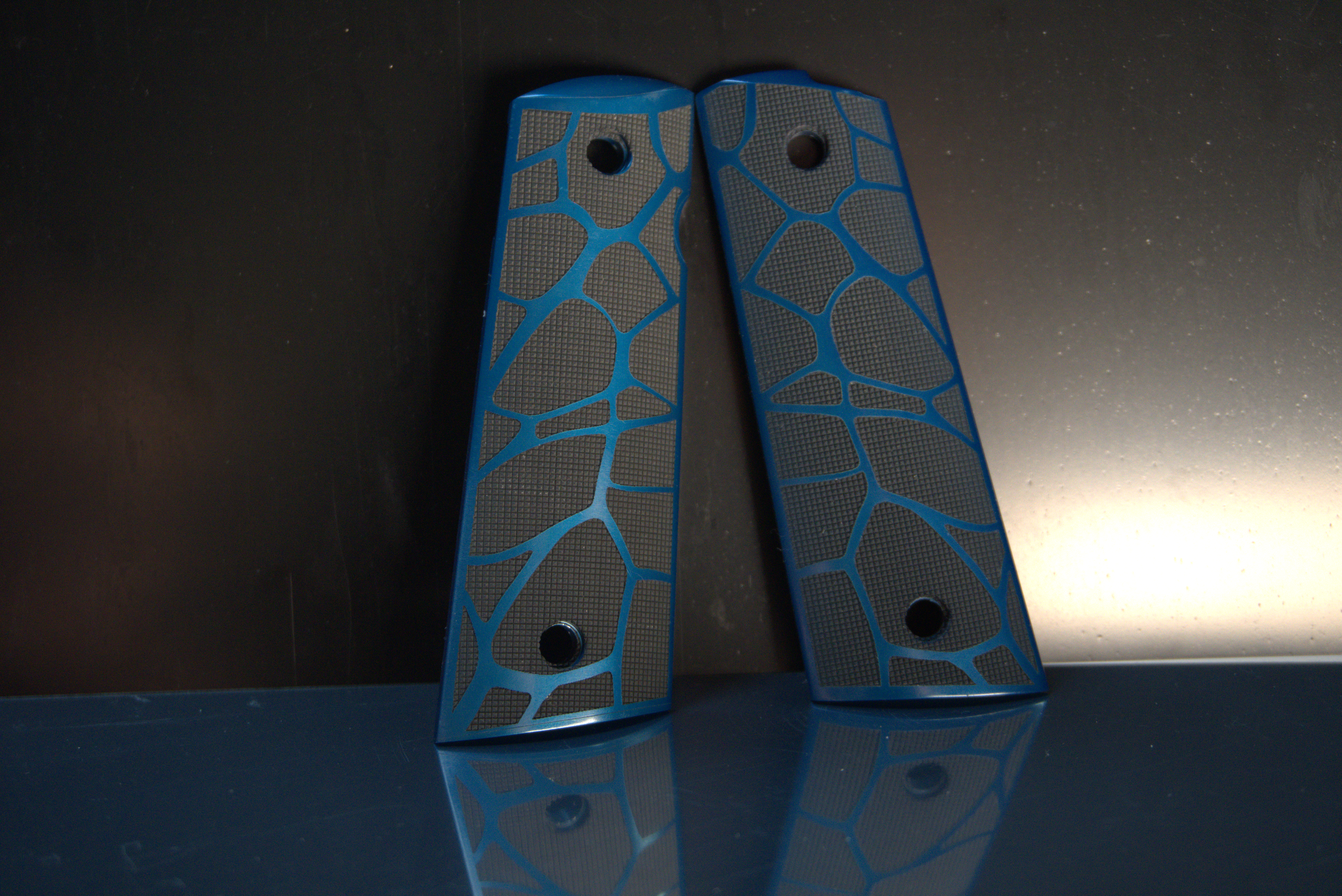 Reverse engraving (where the background is engraved and the design is left untouched) can make text or logos stand out on darker materials.