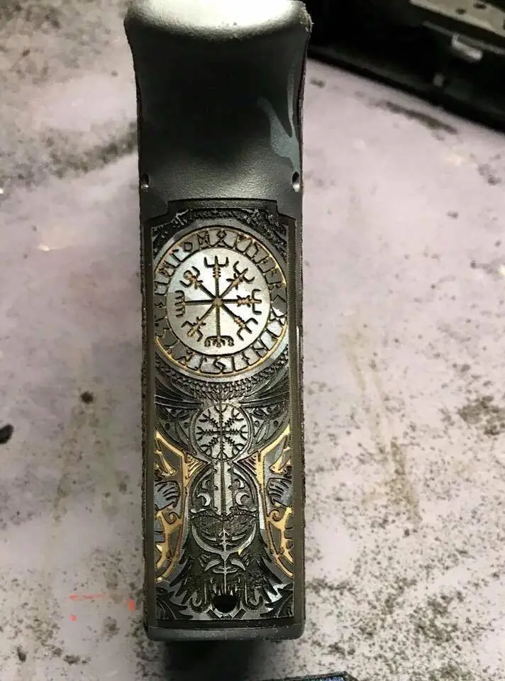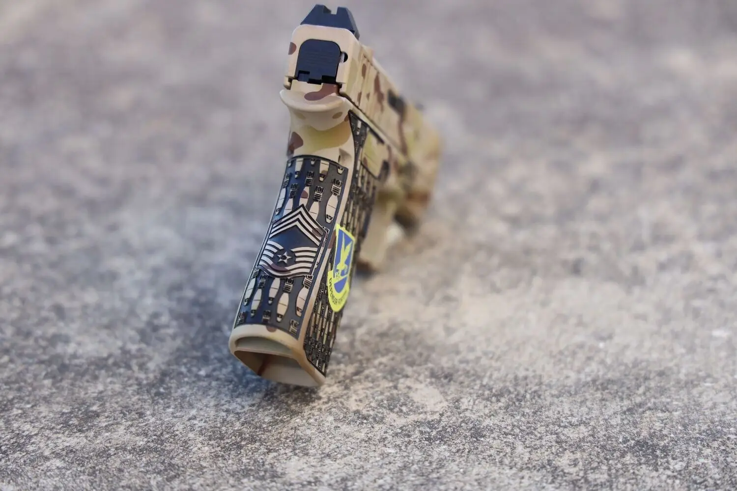 Add a finished look to your laser stippled firearm with our back strap engraving service. Our skilled team sands and engraves the back strap with the same pattern as the sides, giving your firearm a cohesive and wrapped appearance. This service is a great way to take your firearm customization to the next level and make it truly one-of-a-kind.